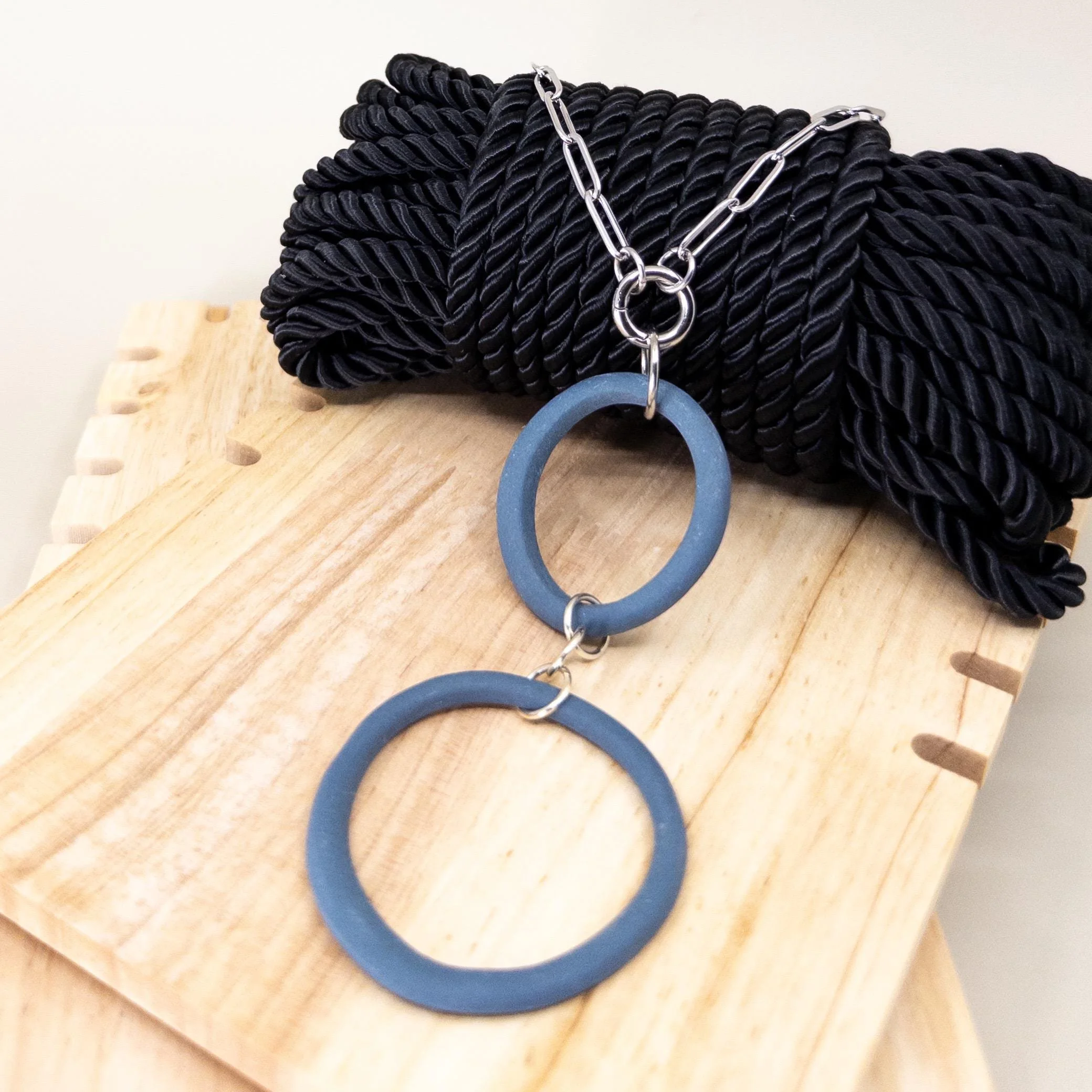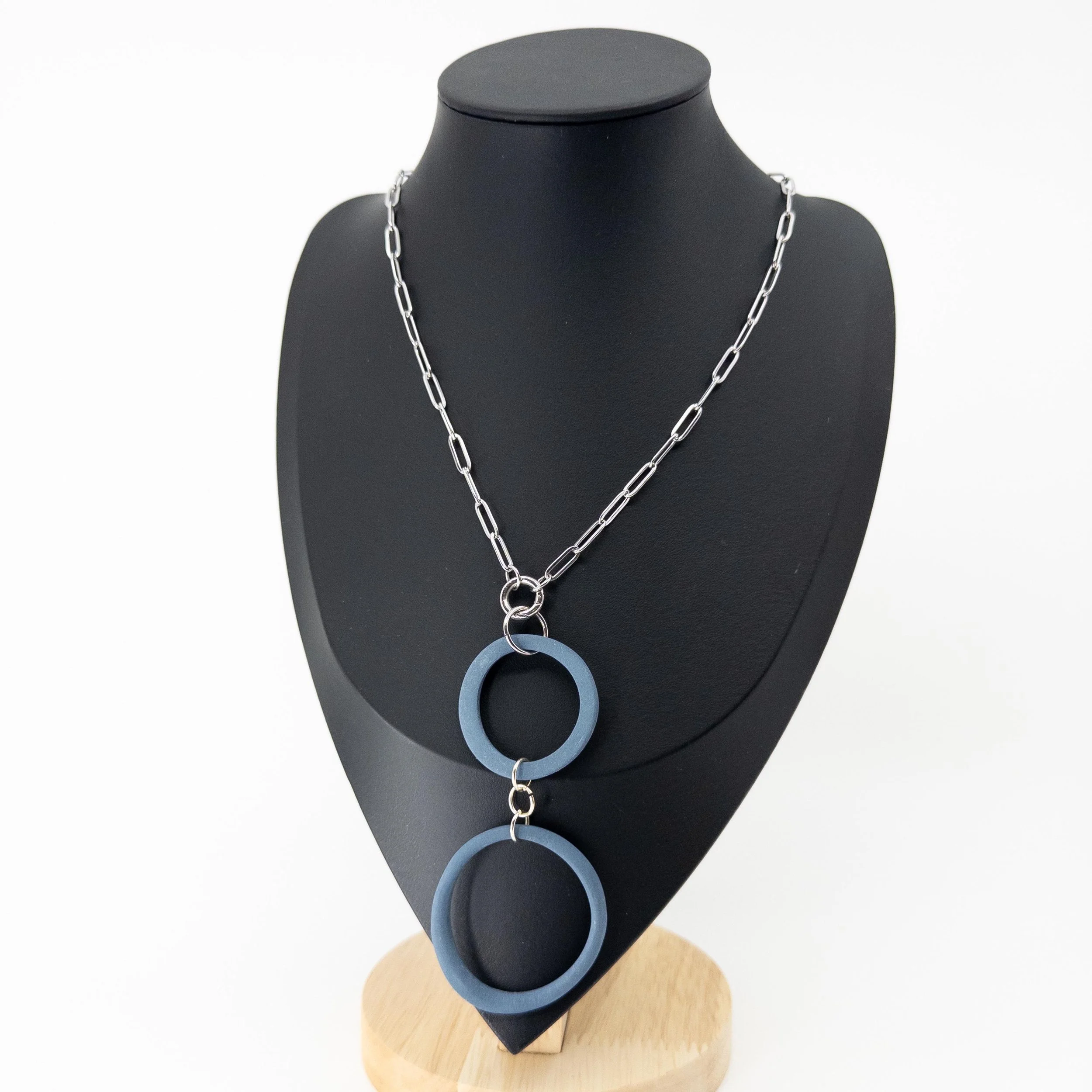 Matte Porcelain Double-Circle Pendant on Stainless Steel Paperclip Chain - Assorted Colors Available