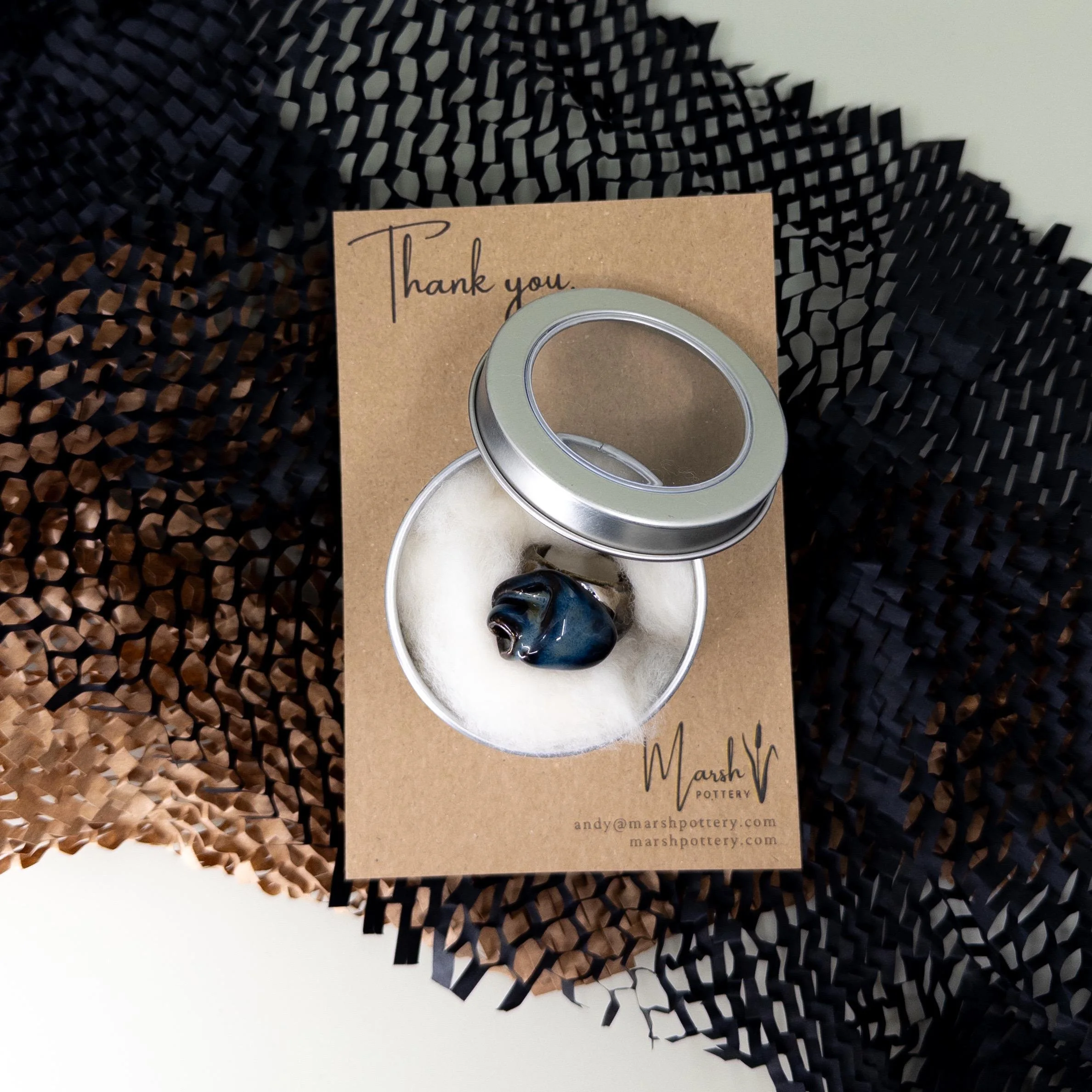Each ring comes with its own charm—crafted entirely by hand without molds, making it uniquely yours. Some are finished with metallic glaze, some are finished with real gold luster for that extra hint of luxury; I’ll always note which is which. Due to the ceramic process, not every area can be glazed—this is part of what makes each ring perfectly imperfect and truly one-of-a-kind.